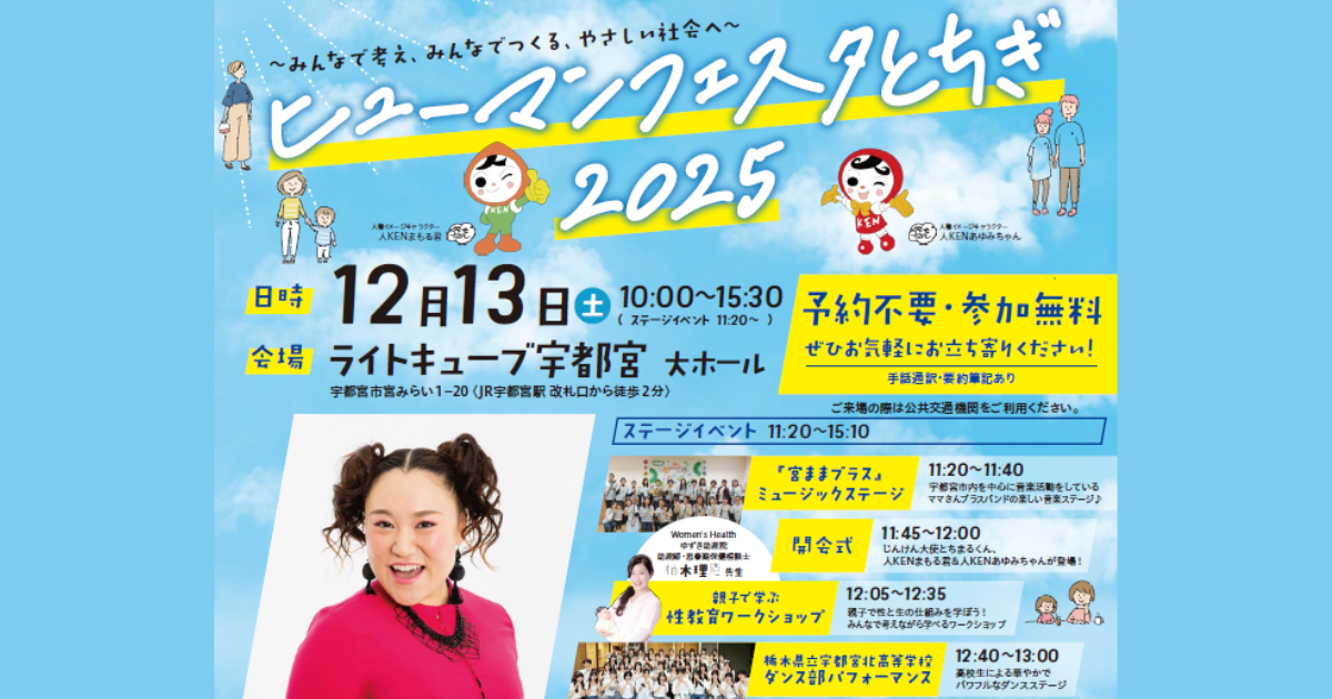 ヒューマンフェスタとちぎ2025に登壇します‼ 2025 11/07 イベント 今後のイベント 2025年11月7日 なんと、ヒューマンフェスタとちぎ2025に登壇させていただくことになりました! 12:05~ 親子で学ぶワークショップを開催します!無料ですので、ぜひご参加くださいね! また、バービーさんとクロストークさせていただきます!ドキドキワクワクです! イベント 今後のイベント よかったらシェアしてね! URLをコピーしました! URLをコピーしました! 子どもの自殺・性被害を防ぐ為「幸せに生きる力」を育む絵本を全国の親子に届けたい 「女性のエンパワーメント基金 in TOCHIGI」活動成果報告会 関連記事 お寺で 茶道×性教育 第二弾開催します! 2025年11月9日 男女共生社会をめざす 第42回うつのみや市民のつどい 2025年11月9日 YouTubeはじめました‼ 2025年11月9日 「女性のエンパワーメント基金 in TOCHIGI」活動成果報告会 2025年11月7日 子どもの自殺・性被害を防ぐ為「幸せに生きる力」を育む絵本を全国の親子に届けたい 2025年8月5日 第24回栃木看護学会学術集会のシンポジウムで発表してきました 2024年12月4日 大人女性のカラダとココロの性教育講座 2024年12月4日 すこやかこころとからだカフェ 2024年11月23日
